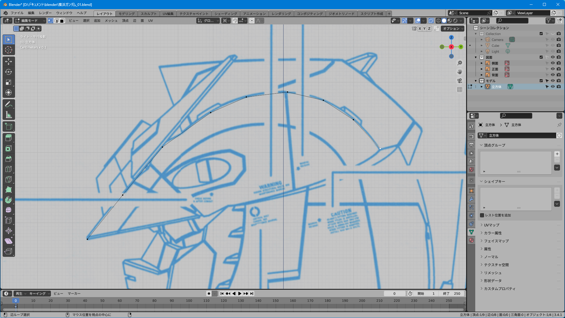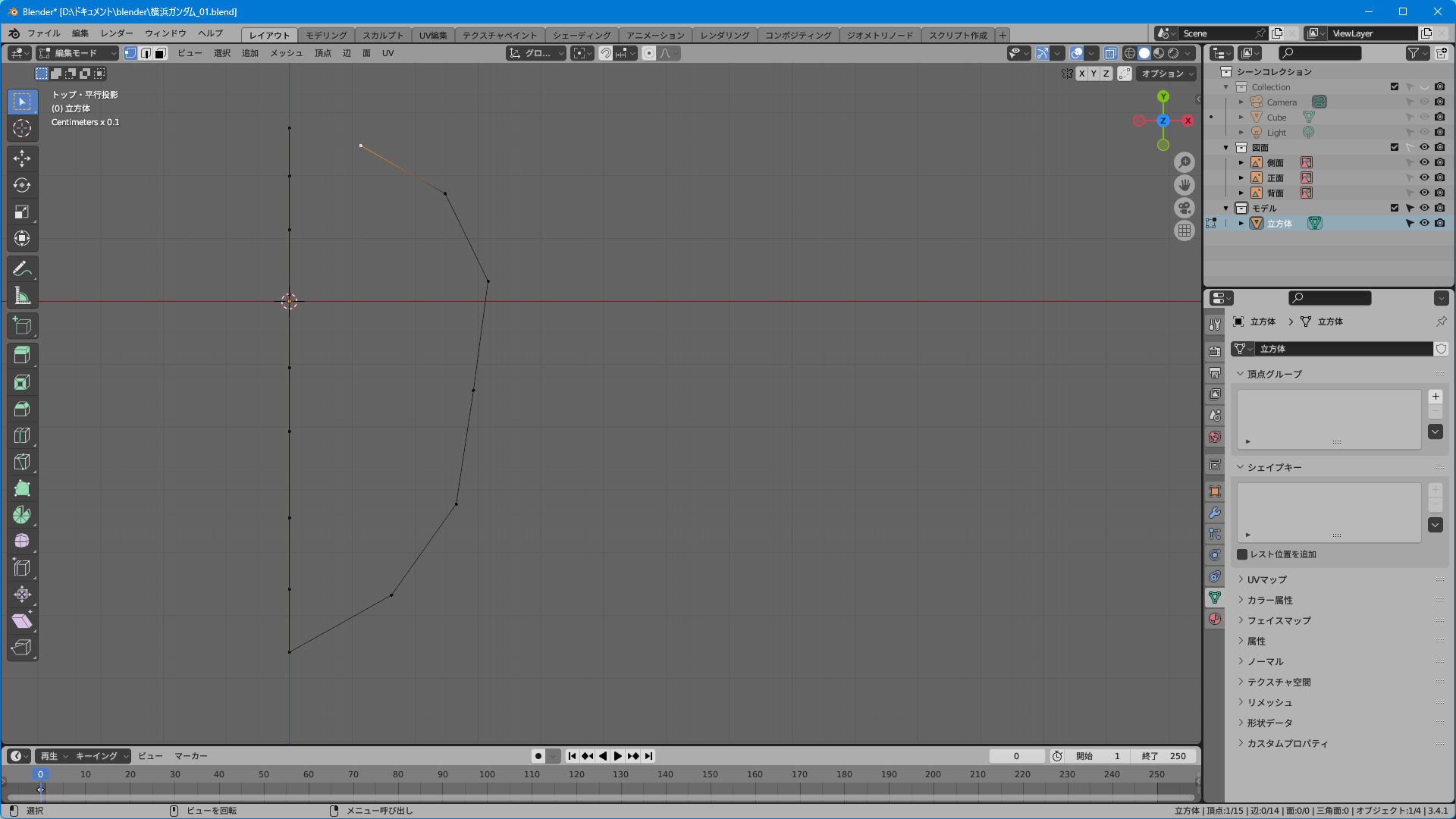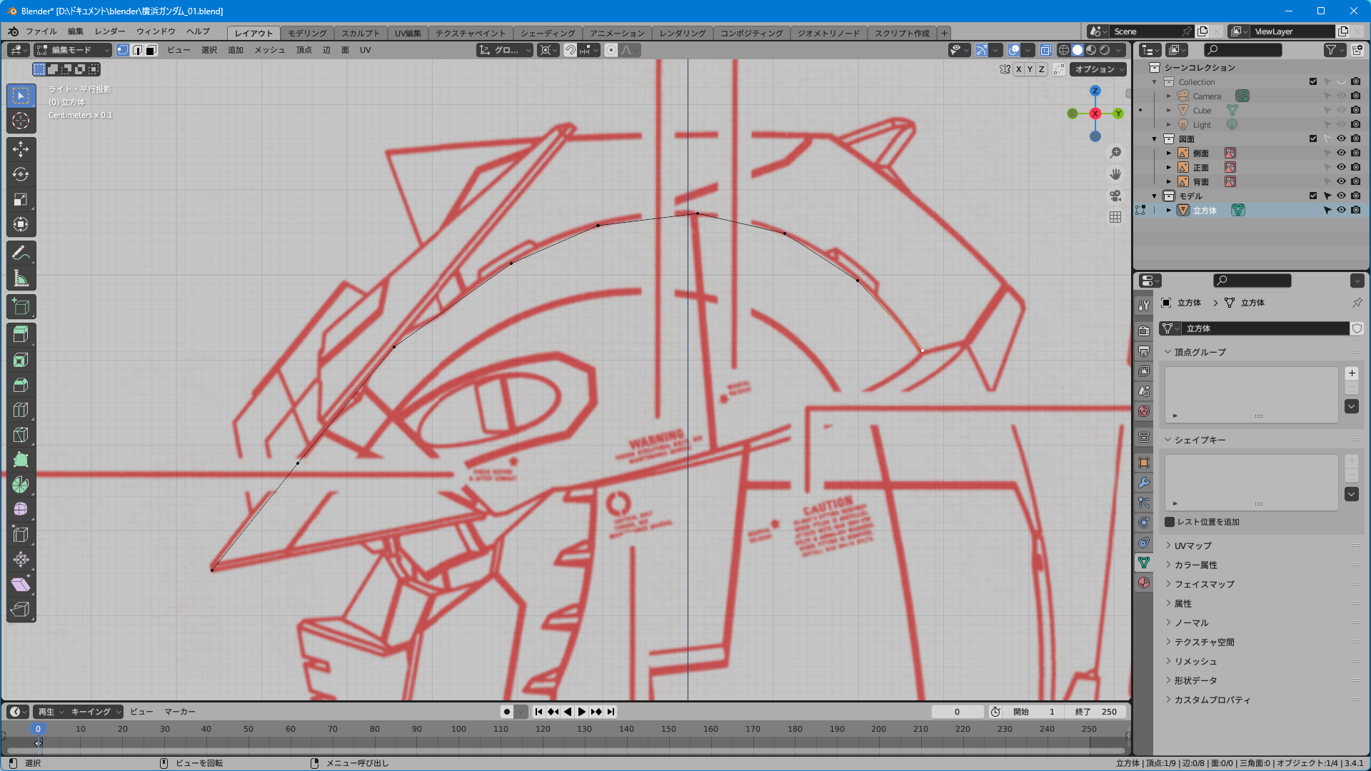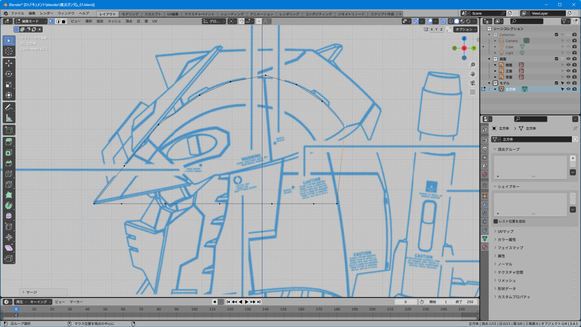 取説のスキャンのみだと上面図がないのでプラモやイラストを参考に頑張って逆ぴちょんちゃんっぽく頂点を追加する。