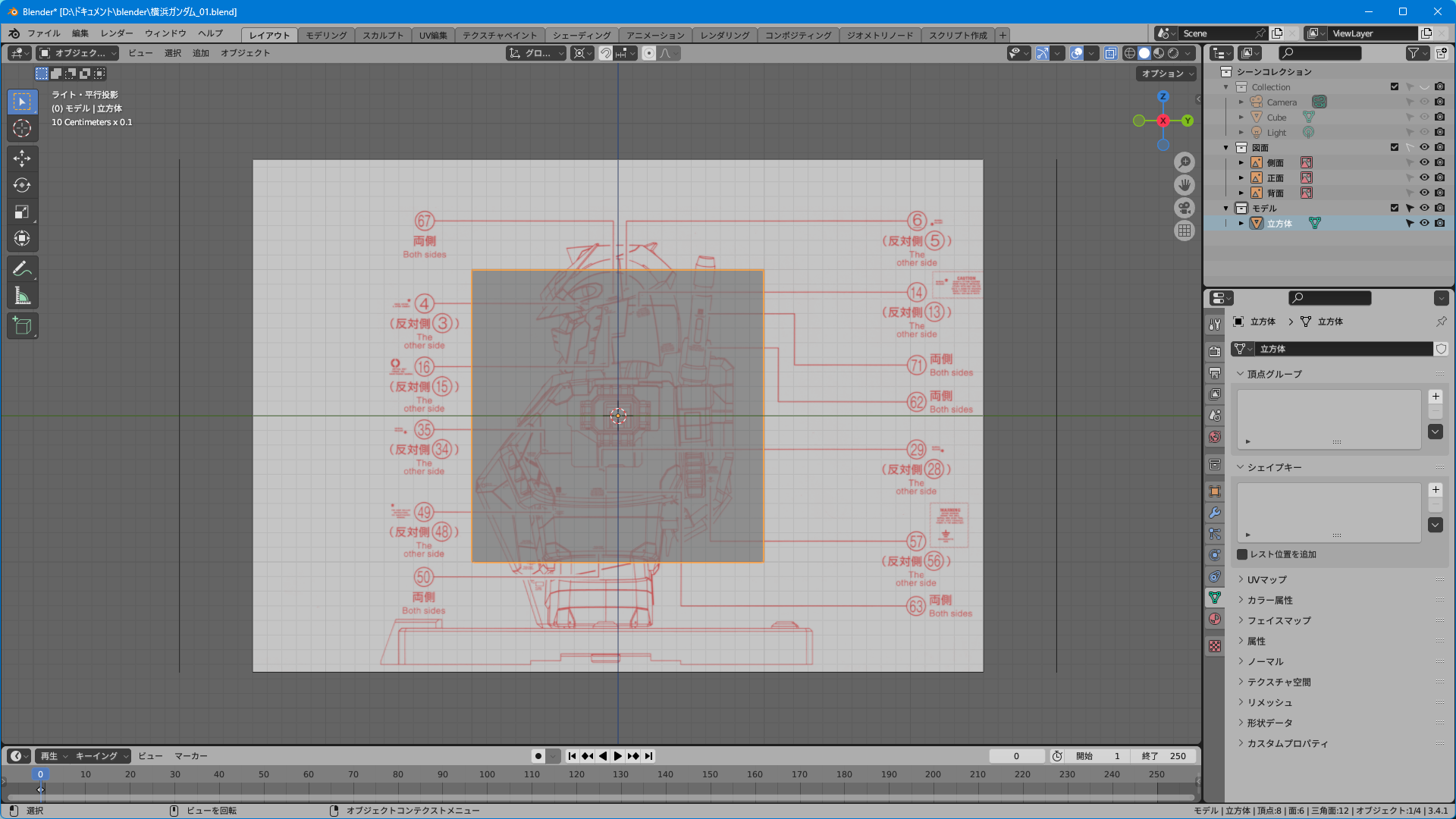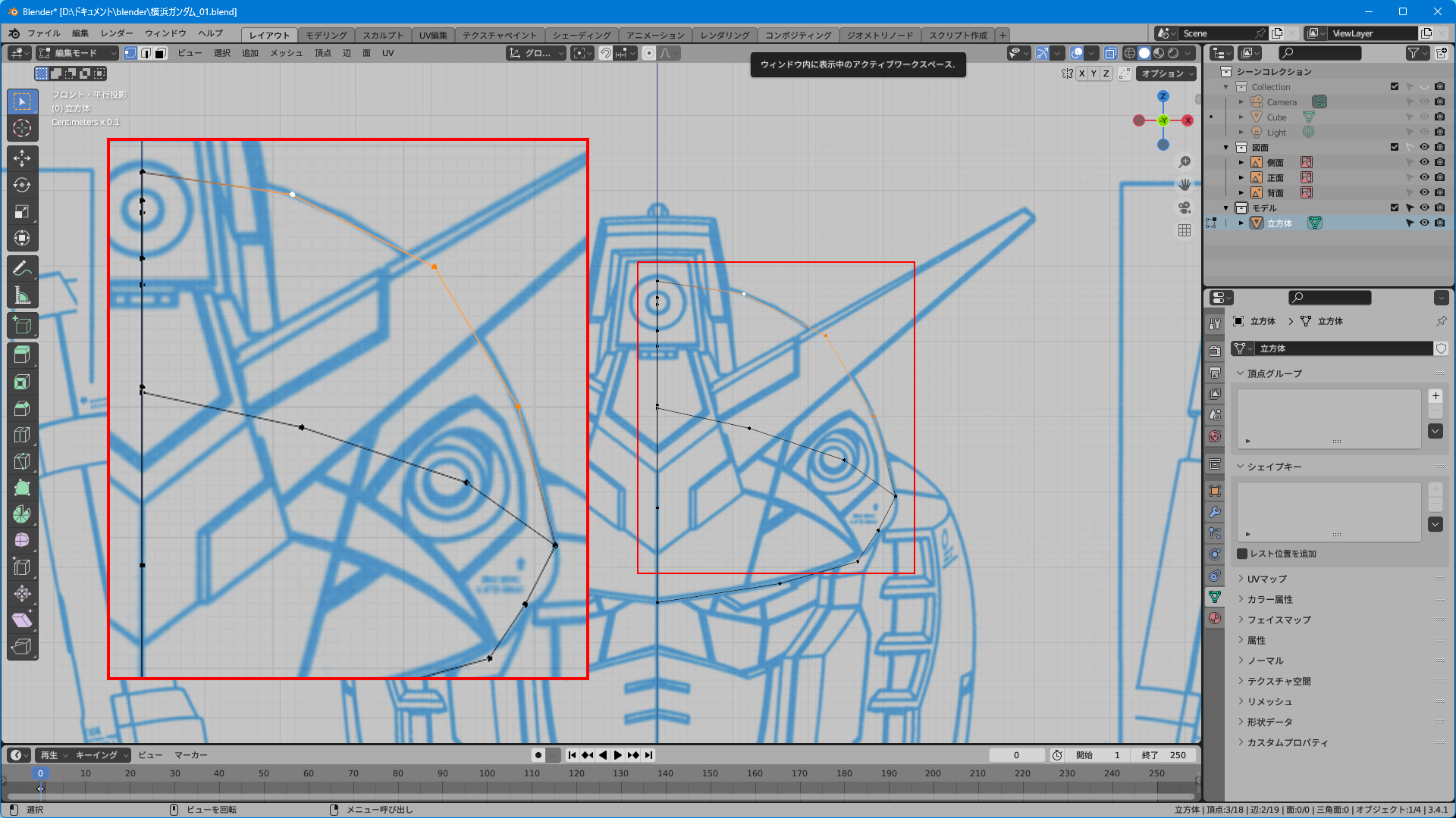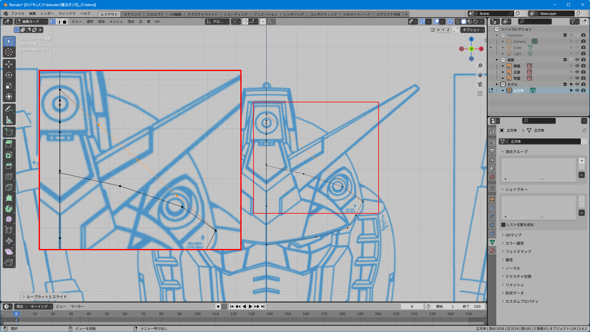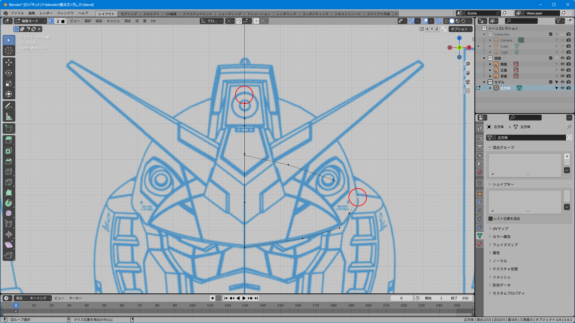 取説のスキャンのみだと上面図がないのでプラモやイラストを参考に頑張って逆ぴちょんちゃんっぽく頂点を追加する。