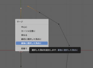 3. Mを押してマージメニューを開き「最後に選択した頂点に」を押す