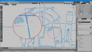 フリーハンドで移動するときはgを押すとgrub(つかむ)状態になり、選択した頂点を移動することが出来る。マウスカーソルを移動して左クリックで確定する。曲面修正地獄は「選択」「g」「移動」「左クリック」を延々と繰り返すことになる。