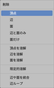 無慈悲に全要素が削除される。四角っぽいオブジェクトであればプリミティブオブジェクトを加工するが頭頂部のような局面のみで構成されているオブジェクトはいっそ無から作成した方がよい気がする。