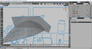 面の押出をしたら側面からのビューで大まかな位置を合わせる。