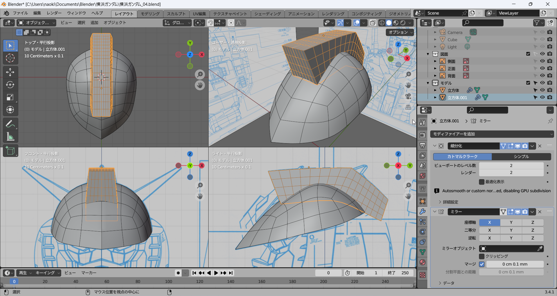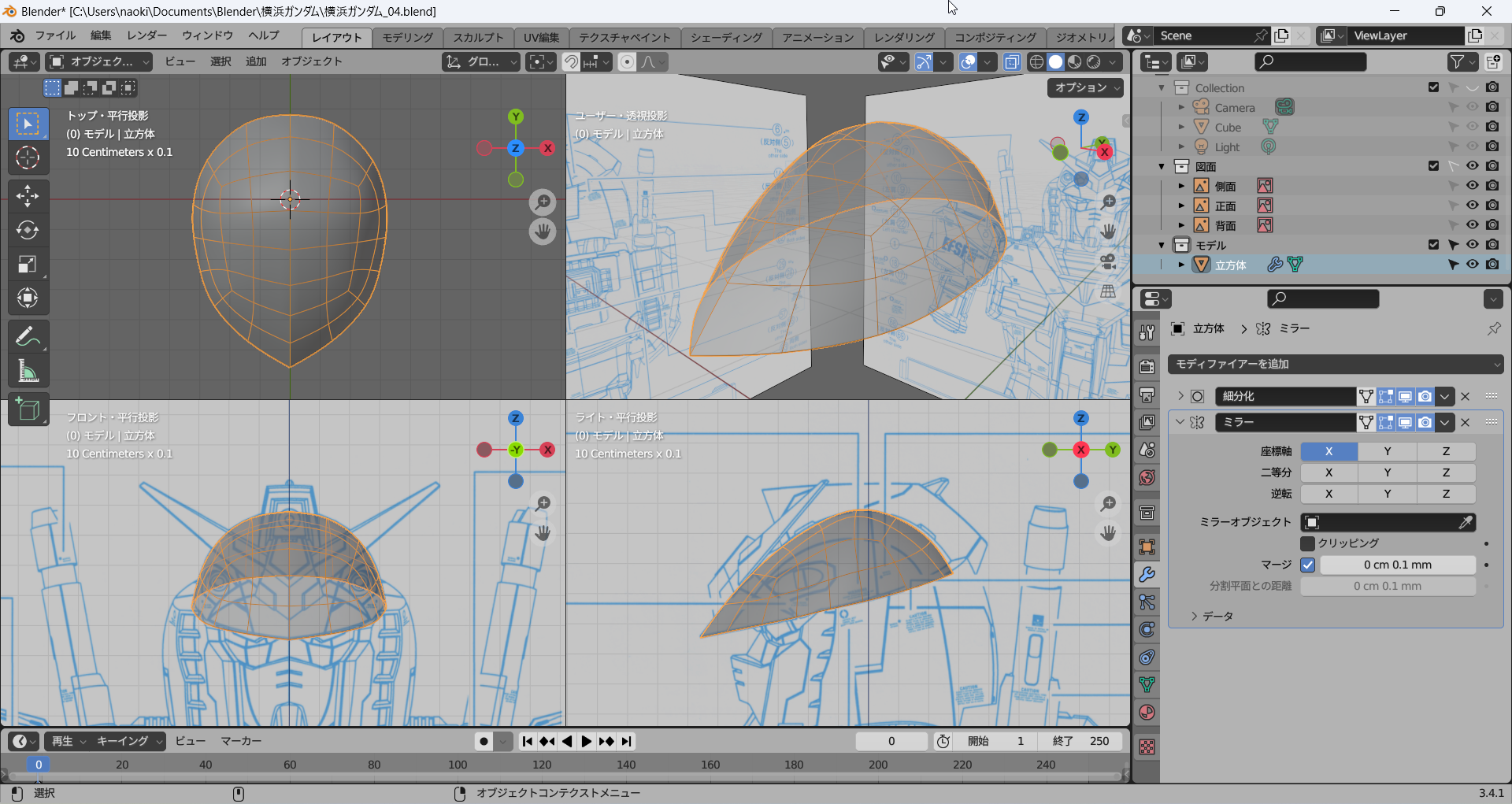 ミラーオブジェクトを表示した状態でつなぎ目などに違和感があったら頂点修正を行う。
