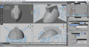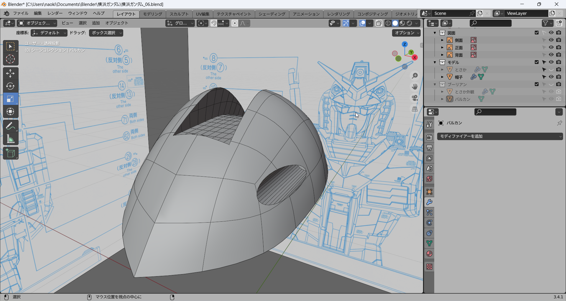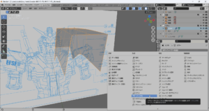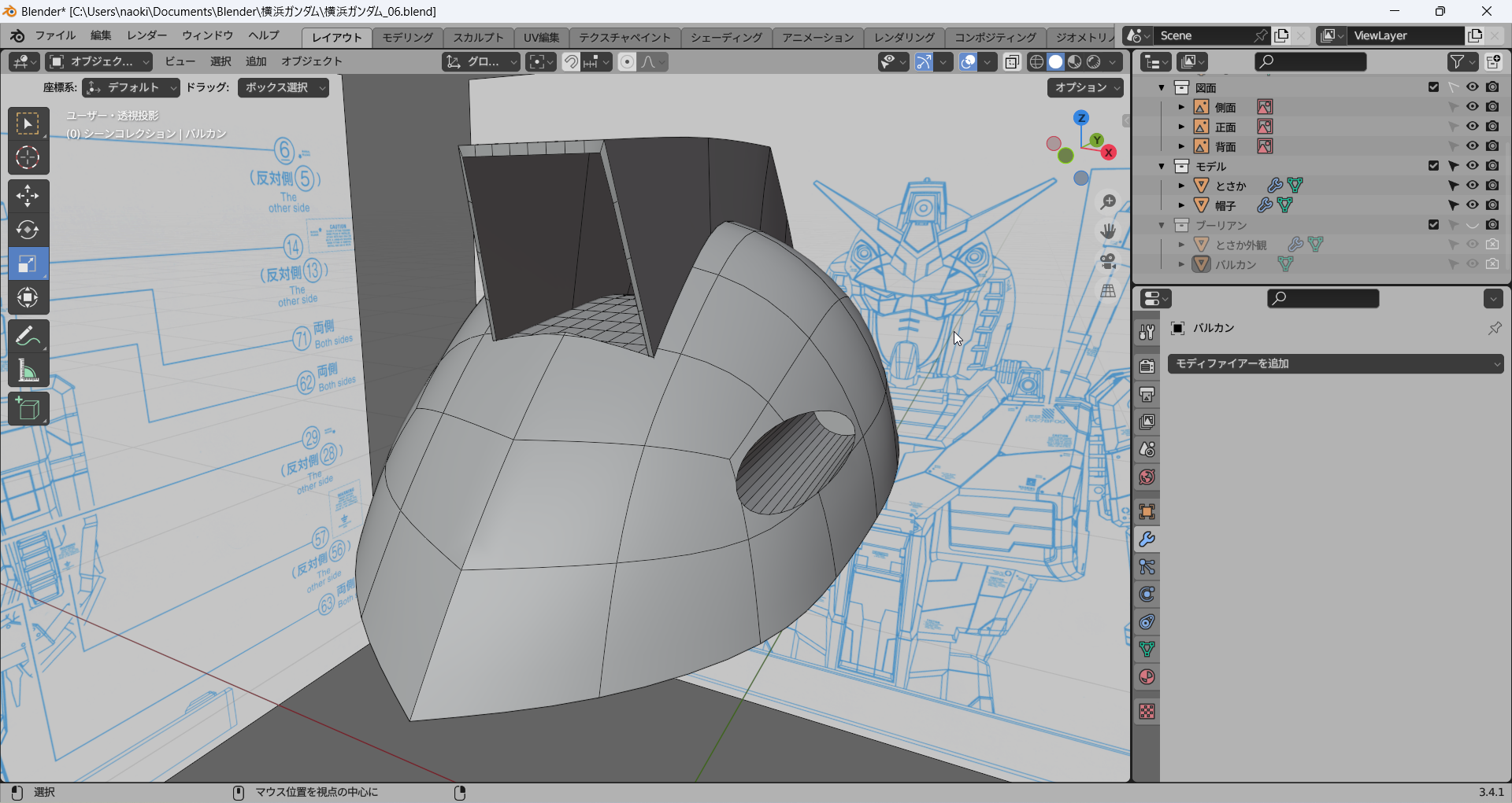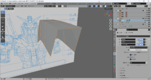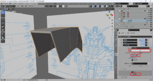 後工程でブーリアン機能を使用してとさかとバルカン部分を削るが、板のままだとブーリアンを適用することができず、立体化する必要がある。