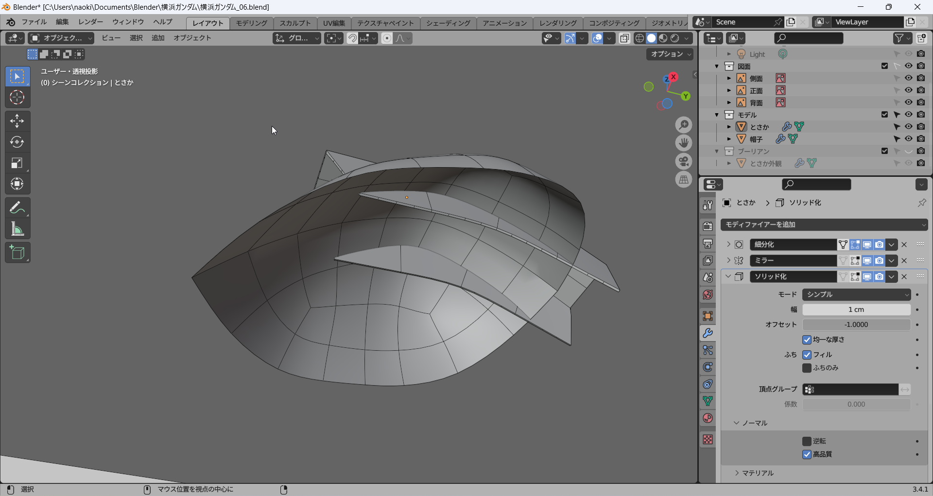 今回はソリッド化モディファイアーと蓋をすることにより固体とする作業を行った。