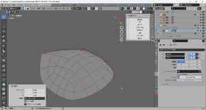 見た目があまり変わらないので厚みを調整する。幅は作成しているモデルのサイズにより変わってくるが今回は1cmとした。モデリングを進めて不自然だと感じたらそのときあらためて調整する。
