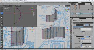 押し出したら下絵に沿って下辺を修正する。下辺の頂点を修正したらループカットをして頂点を挿入する。今回は3点追加した。