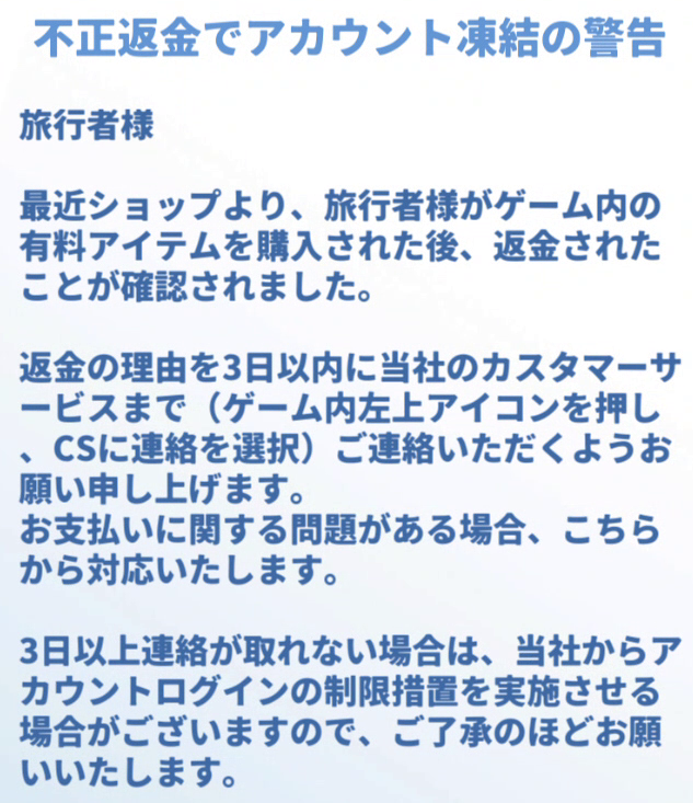 勝手にゲーム内通貨を削除された後はアカウント凍結はされませんでしたがエビデンスの提示もなく、一方的に通知後に同意もなくデータ削除するようなゲームを続けられるわけはありません。