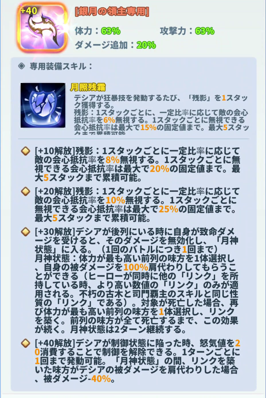 専用40になると制御解除能力と連結した味方の被ダメ-40%バフを獲得します。