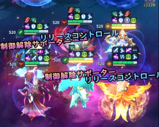 一番都合がよいのは当然、制御されたら即解除するタイプです。ですが、現時点では各方法で戦闘中に1回できるかどうかです。ゼフィに関しては制御されたキャラともう一人の味方が荒野の美徳を使って制御解除するので場合によっては本命のキャラの制御を解除できずに荒野の美徳を消費してしまう事もあります。